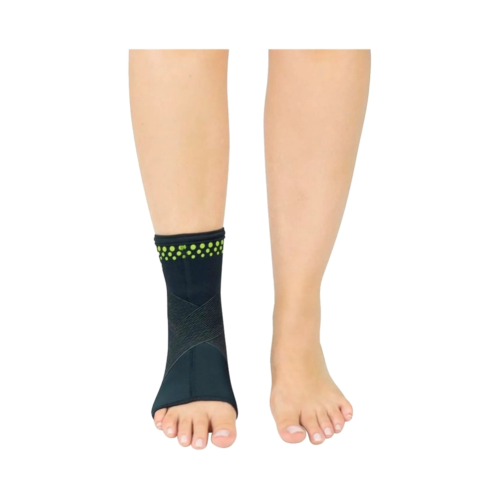 A tornozeleira proporciona estabilização na região do tornozelo, auxiliando na prevenção e recuperação de lesões. Possui cintas elásticas cruzadas que oferecem maior compressão e estabilização da articulação. Anatômica e com abertura no calcanhar, oferece maior conforto durante as práticas esportivas. Fabricada em Neoprene nas regiões do tornozelo e da perna, que contribui com o aquecimento e alívio da dor, e em tecido transpirável na região do pé, que permite a absorção do suor, proporcionando maior conforto durante o uso. Bilateral, pode ser usada tanto no lado direito quanto no esquerdo.