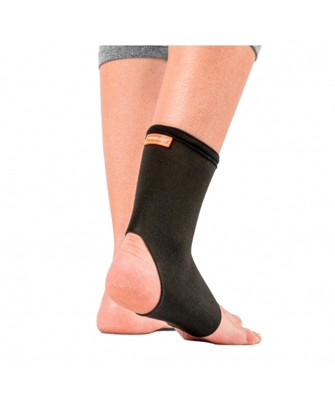 - Vista o produto pelo pé, encaixe o calcanhar no orifício, posicione de modo que fique confortável e permita a movimentação.