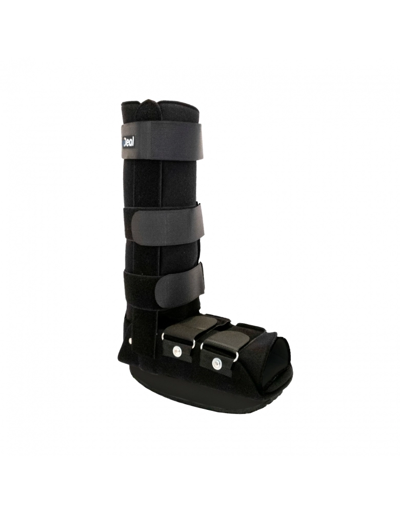 Este produto é indicado para fraturas estáveis, na ausência de deformidades graves. Também indicado para luxações, entorses e lesões crônicas do tornozelo e na prevenção e tratamento das deformidades geradas pela artrite reumatóide. Este Produto possui barbatanas metálicas resistentes e leves que fornecem imobilização e possui solado antiderrapante em formato confortável. Solado antiderrapante.