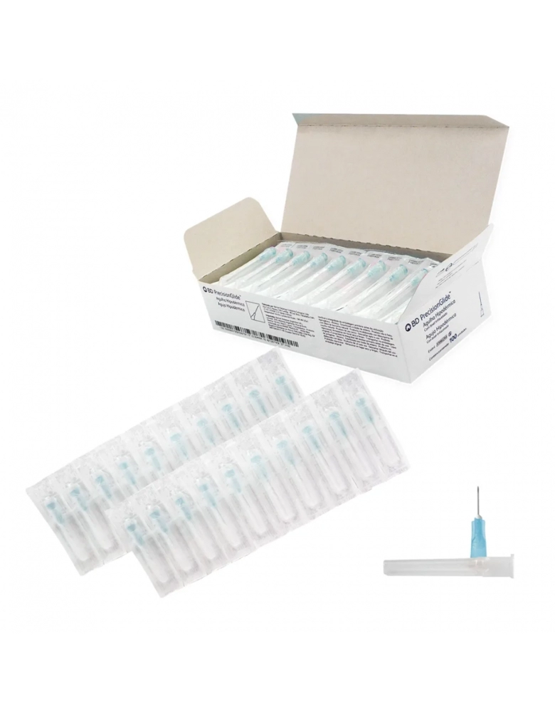 Agulha descartável estéril, embalada unitariamente e com a qualidade e precisão da marca BD.