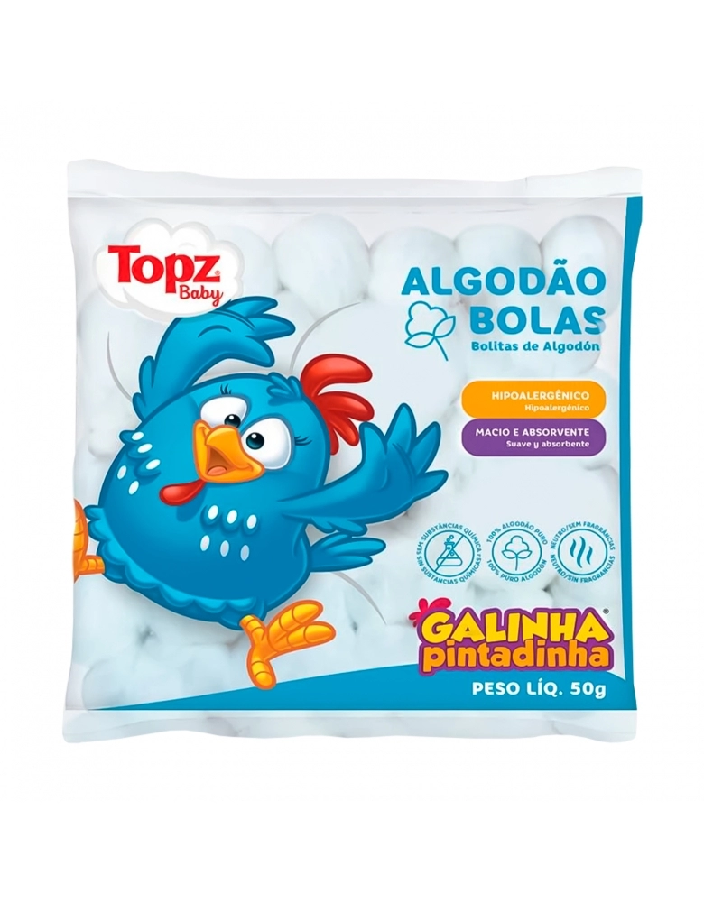 ALGODÃO BOLAS 50G GALINHA PINTADINHA TOPZ BABY