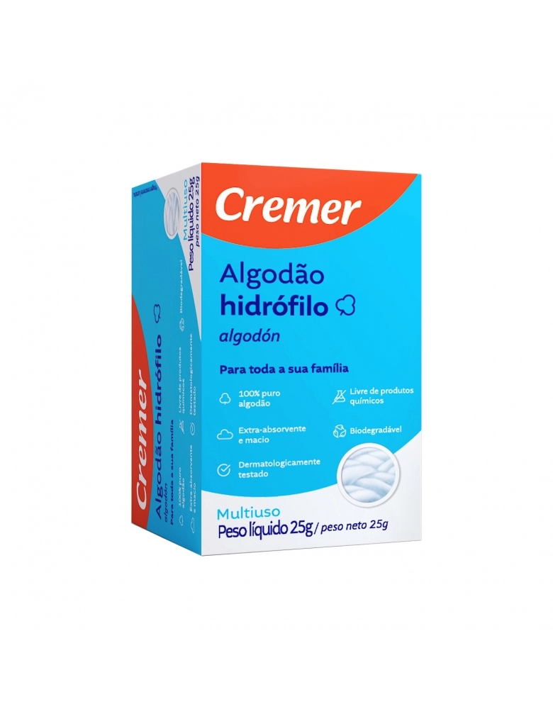 MATERIAIS>CREMER>PRIMEIROS SOCORROS>ALGODÃO HIDRÓFILO 25G CREMER