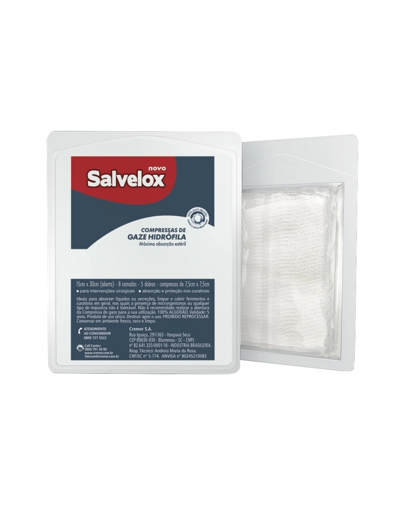 As Compressas de Gaze Salvelox Estéril 11 Fios 10 Unidades, é confeccionada com fios 100% algodão hidrófilo.