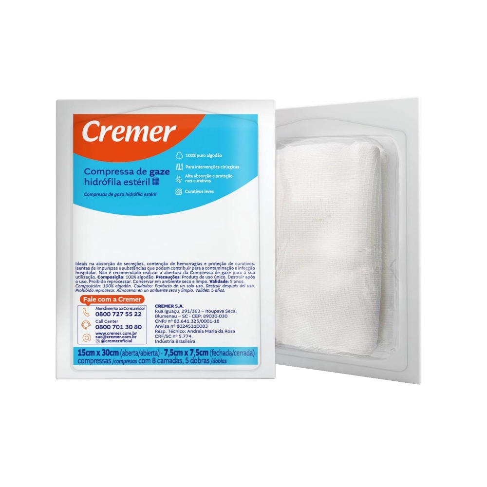 COMPRESSA GAZE ESTÉRIL 15X30 ALGODONADA CREMER