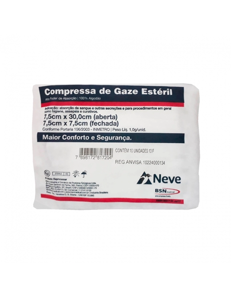 COMPRESSA GAZE ESTÉRIL 7,5X7,5 13FIOS C/10 CROCHÊ NEVE