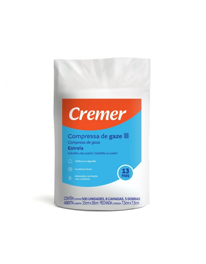 COMPRESSA GAZE HIDRÓFILA 7,5X7,5 13FIOS C/500 CREMER