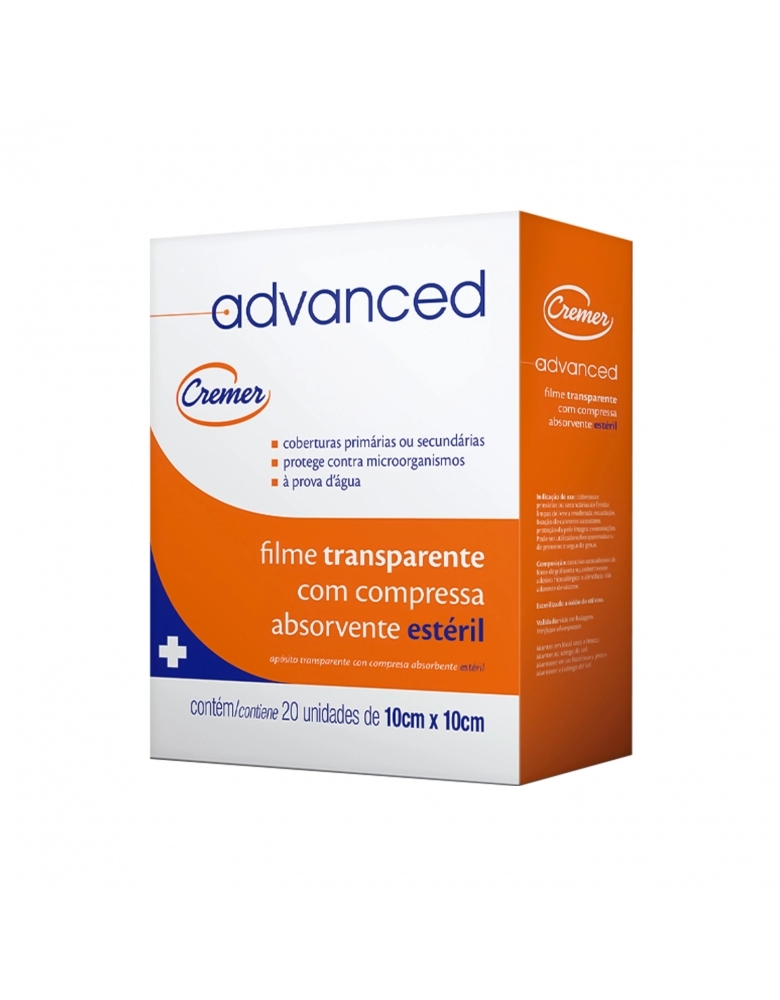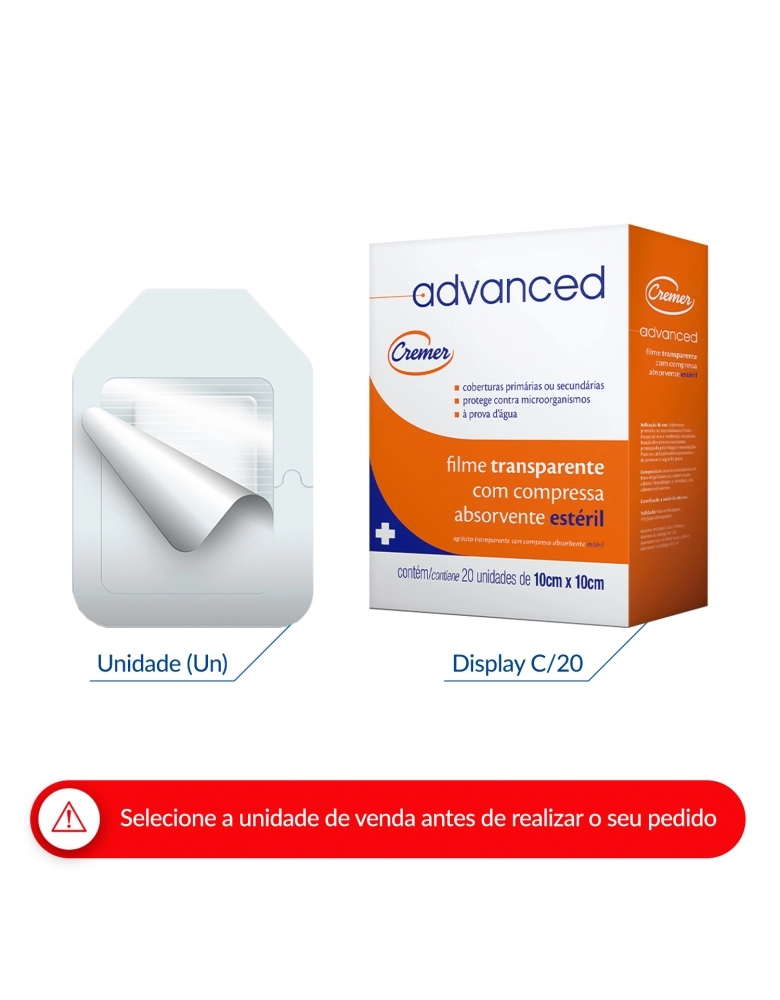 CURATIVO ADVANCED FILME TRANSPARENTE COM COMPRESSA ABSORVENTE ESTÉRIL 10X10CM CREMER