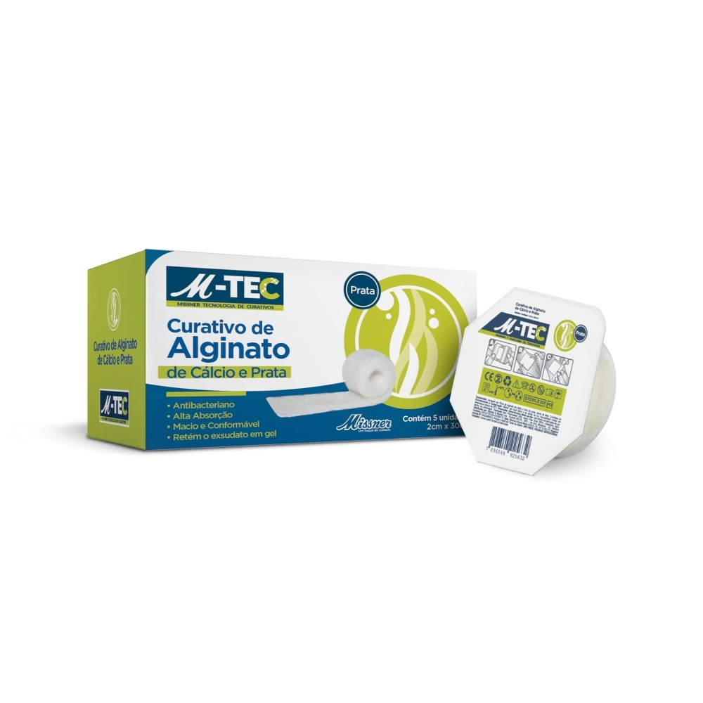 O curativo de alginato de cálcio e prata contém alginato, podendo ajudar a apoiar o controle de sangramento menos em feridas superficiais. Este produto também pode sobre bandagens de compressão.