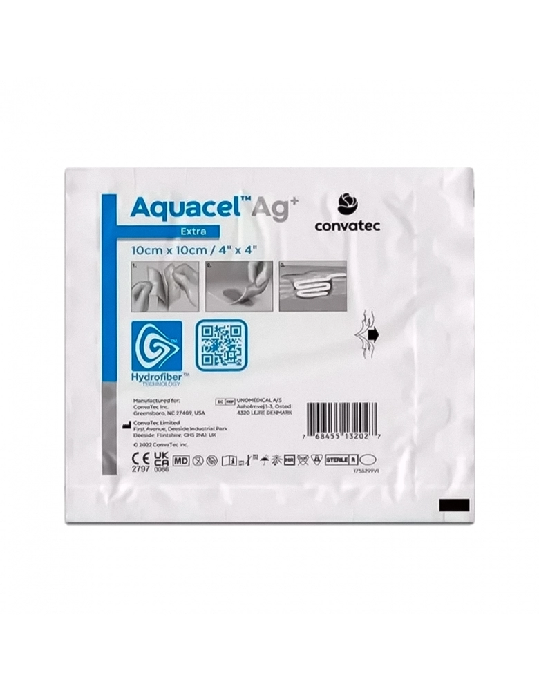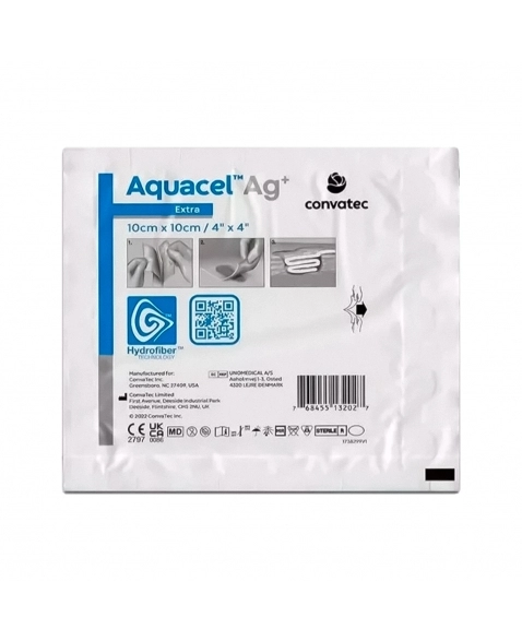 O Curativo Aquacel AG+ Extra 10x10cm ConvaTec é um curativo primário, estéril, não aderente e macio, em forma de placa. Absorve grandes quantidades de exsudato e é composto por duas poderosas tecnologias: A Tecnologia Ag+, uma formulação única anti-biofilme contendo prata e a Tecnologia Hydrofiber, que ajuda a criar o ambiente ideal para cicatrização.