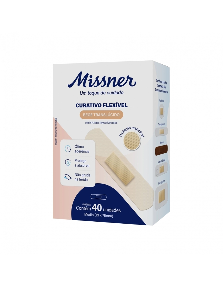 Os curativos flexíveis bege translúcido Missner oferecem as condições ideais de cuidado para pequenos ferimentos, cortes, bolhas ou arranhões. Protegendo o local afetado da contaminação por sujeiras e germes, permitindo as melhores condições de cicatrização.