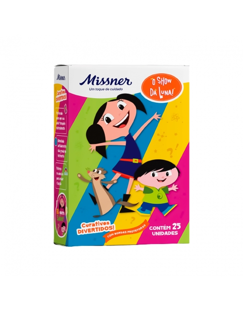 Os Curativos Flexíveis Show da Luna são autoadesivos que, além de divertidos, são muito práticos para serem utilizados no dia a dia. Um machucado protegido com Missner tem menos risco de infeccionar, pois fica protegido contra sujeira, germes e atrito. O curativo possui microfuros que permite o ferimento respirar mesmo estando coberto. São 5 estampas diferentes para maior diversão. É ideal para lesões superficiais, pois protege e auxilia no processo de cicatrização. Não gruda no ferimento.