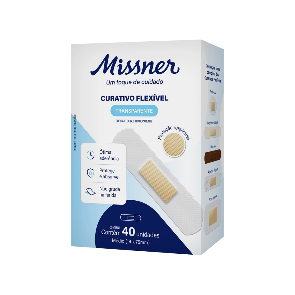 Os curativos flexíveis transparentes Missner oferecem as condições ideais de cuidado para pequenos ferimentos, cortes, bolhas ou arranhões. Protegendo o local afetado da contaminação por sujeiras e germes, permitindo as melhores condições de cicatrização.