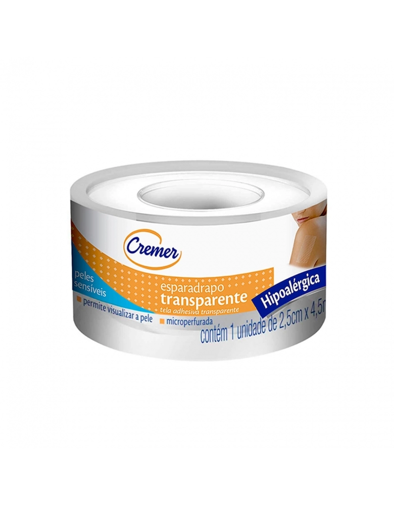 ESPARADRAPO HIPOALERGÊNICO TRANSPARENTE 2.5CMX4.5 CREMER