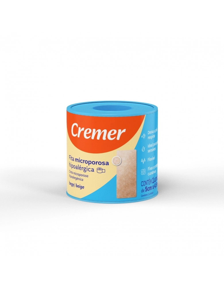 A Fita Microporosa Cremer deixa sua pele respirar. É flexível e possibilita mais liberdade de movimento. Fácil de cortar, tem ótima aderência, é facilmente removível e não deixa resíduos. Ideal para aplicar em regiões de alta sensibilidade.