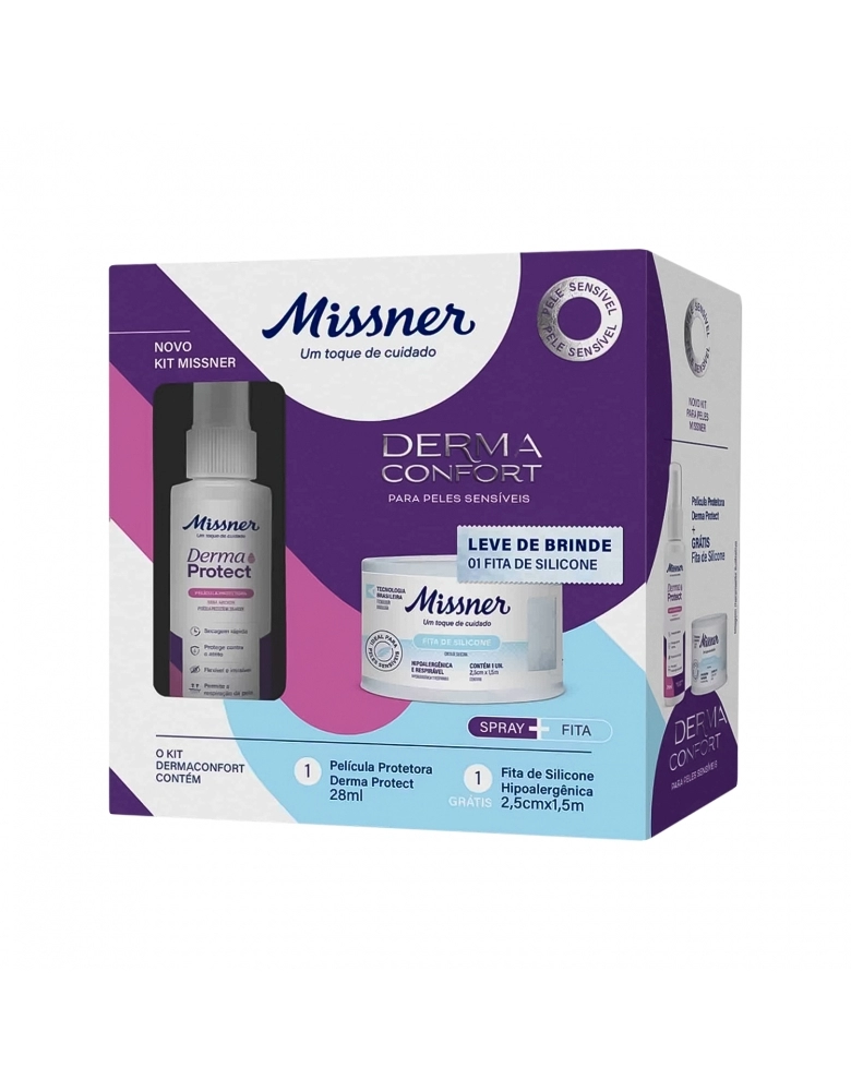 O Kit Derma Confort Missner foi desenvolvido com dois dos principais produtos da linha Missner, o Spray Película Derma Protect e a Fita de Silicone 2,5cm X 1,5m. Neste Kit você compra o Spray e ganha de brinde a Fita de Silicone!