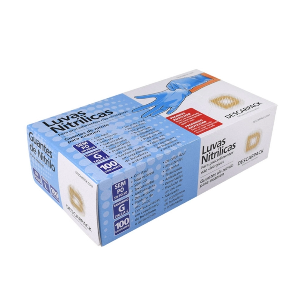 LUVA NITRÍLICA POWDER FREE SEM PÓ AZUL M C/100 DESCARPACK