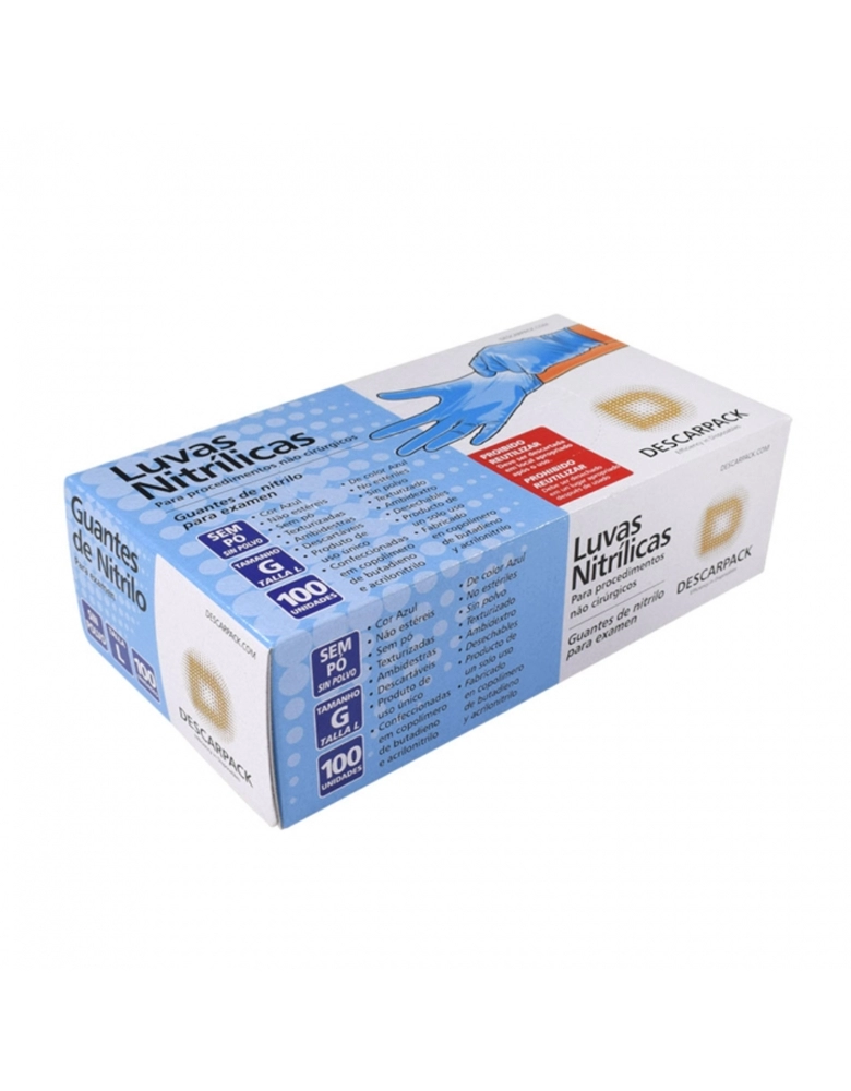LUVA NITRÍLICA POWDER FREE SEM PÓ AZUL P C/100 DESCARPACK
