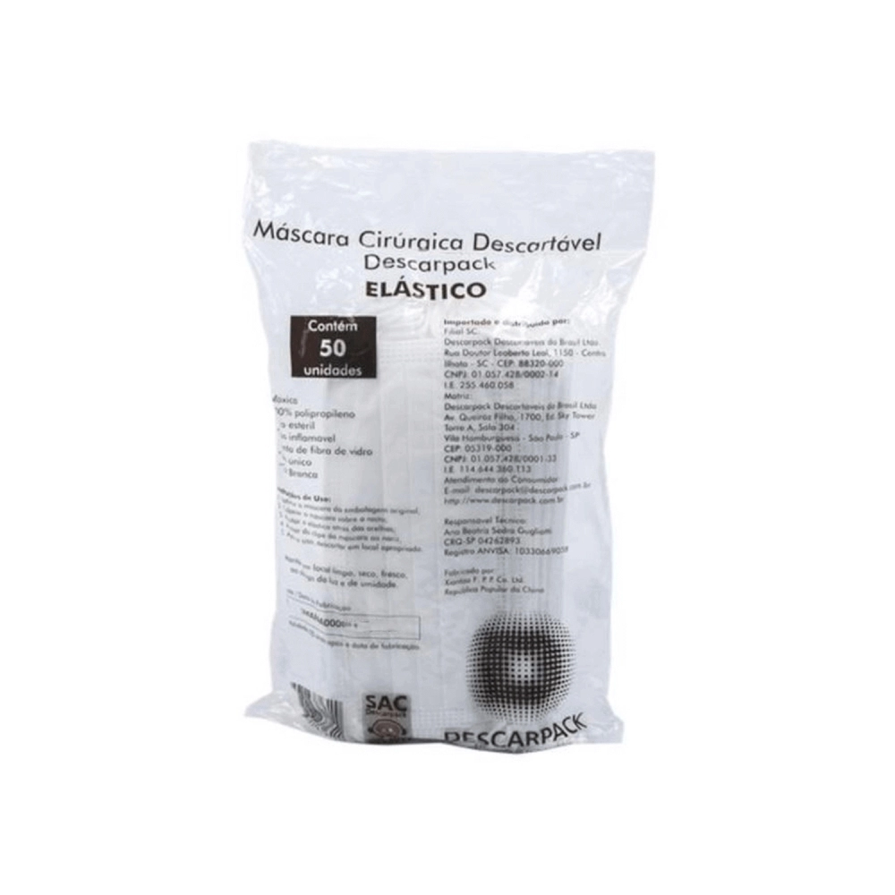 MÁSCARA CIRÚRGICA TRIPLA C/ ELÁSTICO BRANCA C/50 DESCARPACK