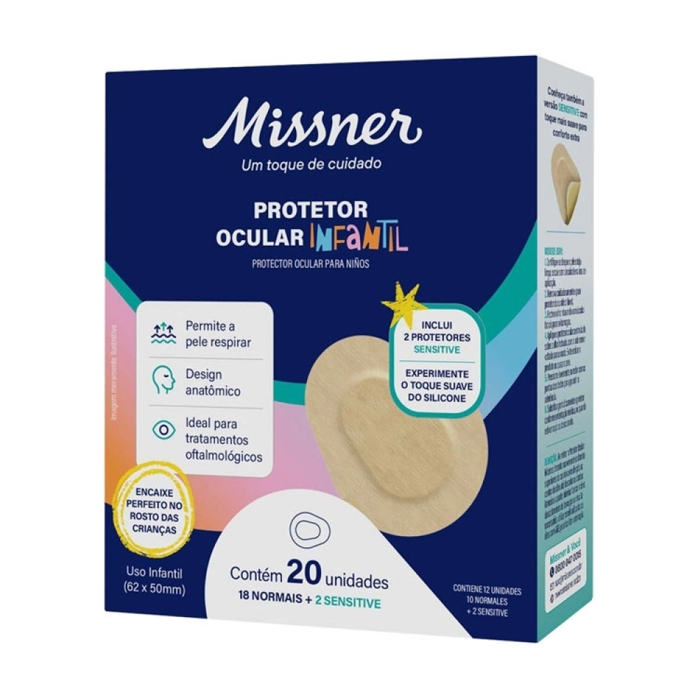 O Protetor Ocular Adesivo Acrílico Infantil da Missner é um produto médico hospitalar de classe I, especialmente desenvolvido para o tratamento de condições oftalmológicas em crianças, como estrabismo e ambliopia. Composto por não tecido de viscose e poliéster, adesivo acrílico hipoalergênico e almofada absorvente laminada com filme de poliuretano, oferece uma aplicação segura e confortável, minimizando o risco de irritações na pele sensível dos pequenos.