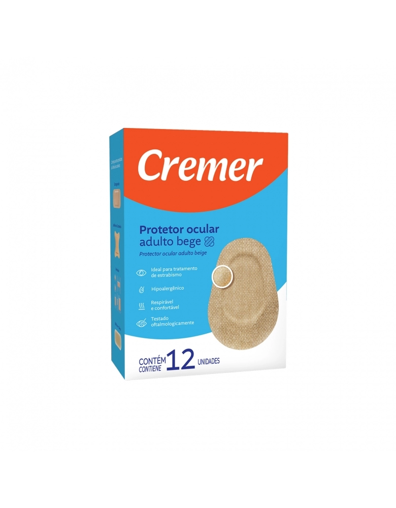 O Protetor Ocular Adulto Bege Cremer é produzido com fita adesiva microporosa ideal para tratamentos de estrabismo, ambliopia e curativos pós-cirúrgicos, deixando a pele respirar. Fácil de aplicar, protege a região sem agredir a pele. Testado Oftalmologicamente.