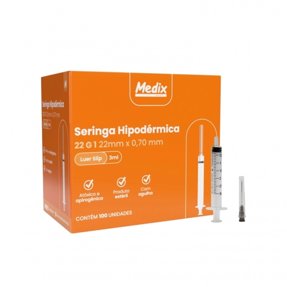 SERINGA HIPODÉRMICA DESCARTÁVEL 3ML 25X7 LUER SLIP MEDIX