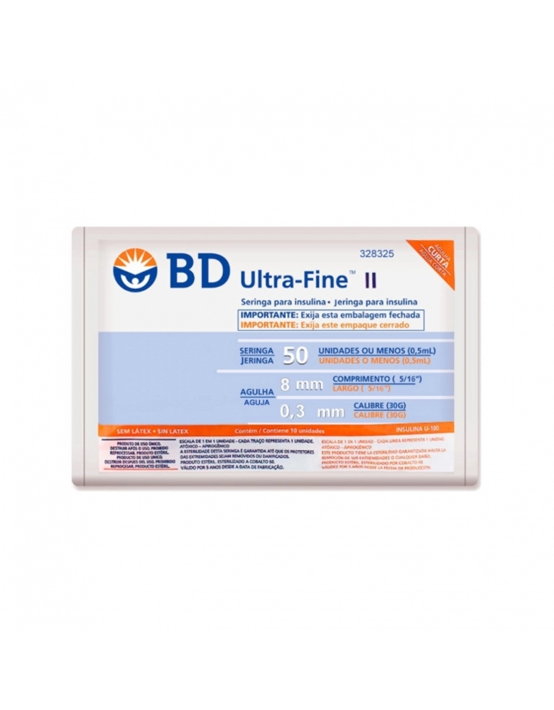 SERINGA INSULINA ULTRA-FINE 0.5ML/50U 8MMX0,30MM 328325 C/10 BD