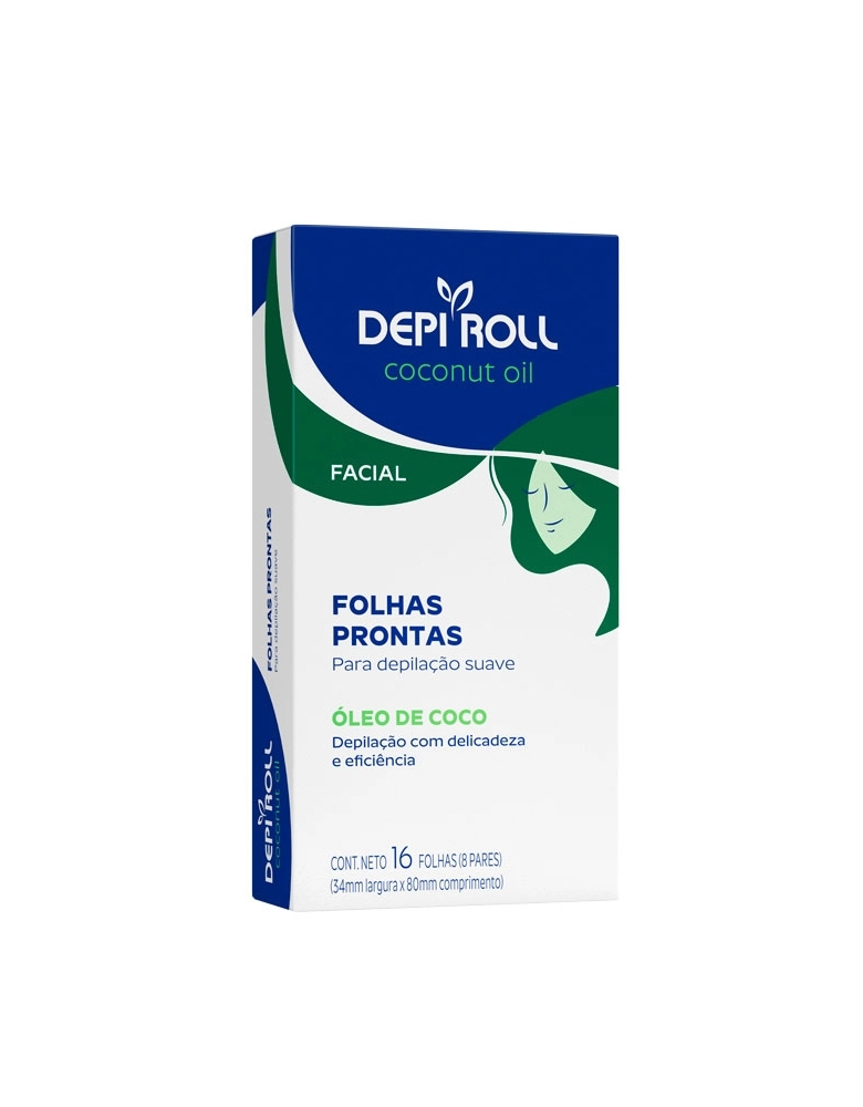 As Folhas Prontas para Depilação Facial Depi Roll Óleo de Coco são indicadas somente para remoção de pelos na região do buço e contorno de sobrancelhas. Pode ser utilizada em todos os tipos de pele.