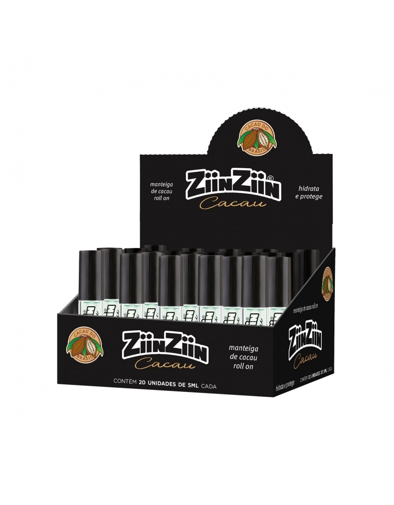 A Manteiga de Cacau ZiinZiin possuí uma embalagem prática e de fácil manipulação, display com 20 unidades. Tem como diferencial o uso do Própolis que é um cicatrizante natural, além de hidratar e proteger, ela é super prática e moderna trazendo um pequeno brilho os lábios sem deixar de lado todas as qualidades da Manteiga de Cacau, podendo ser usada em todas as estações do ano.