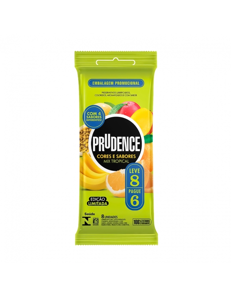 PRESERVATIVO LUBRIFICADO CORES E SABORES MIX TROPICAL LEVE 8 PAGUE 6 PRUDENCE