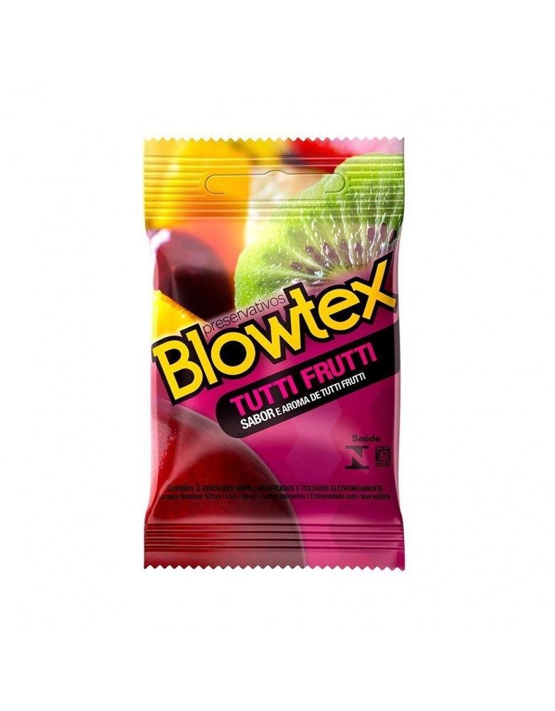 O preservativo Blowtex Tutti-Frutti proporciona segurança com muita diversão: o lubrificante vem com sabor e aroma de tutti frutti.