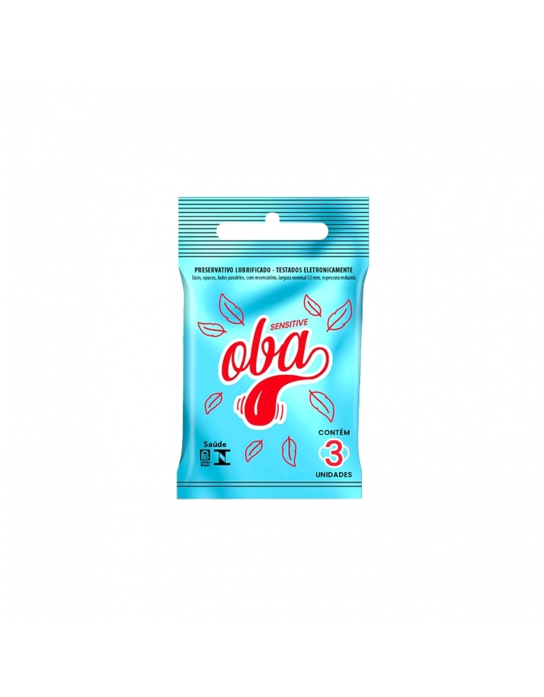 O preservativo Oba Sensitive garante um turbilhão de sensações em uma única embalagem! Nossa maior preocupação é com a quantidade ideal e a portabilidade. Fabricado no Brasil e todos passam por teste de Citoxicidade, preservando as peculiaridades do consumidor Brasileiro, com todas as normatizações atendidas, sem sofrer as possíveis intercorrências de temperatura e manuseio no transporte dos importados.