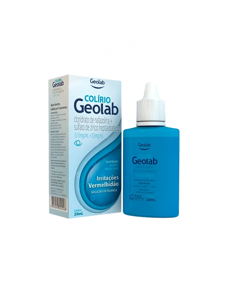 O Colírio Geolab é uma solução oftálmica adstringente para o tratamento das irritações oculares (poeira, vento, calor, fumaça, gases irritantes, luz e corpos estranhos). Os componentes da fórmula possuem ação vasoconstritora (contrai os vasos sanguíneos) e adstringente ocular, diminuindo a vermelhidão e aliviando as irritações nos olhos. Tempo médio de início de ação: possui resposta inicial a partir de 5 minutos.