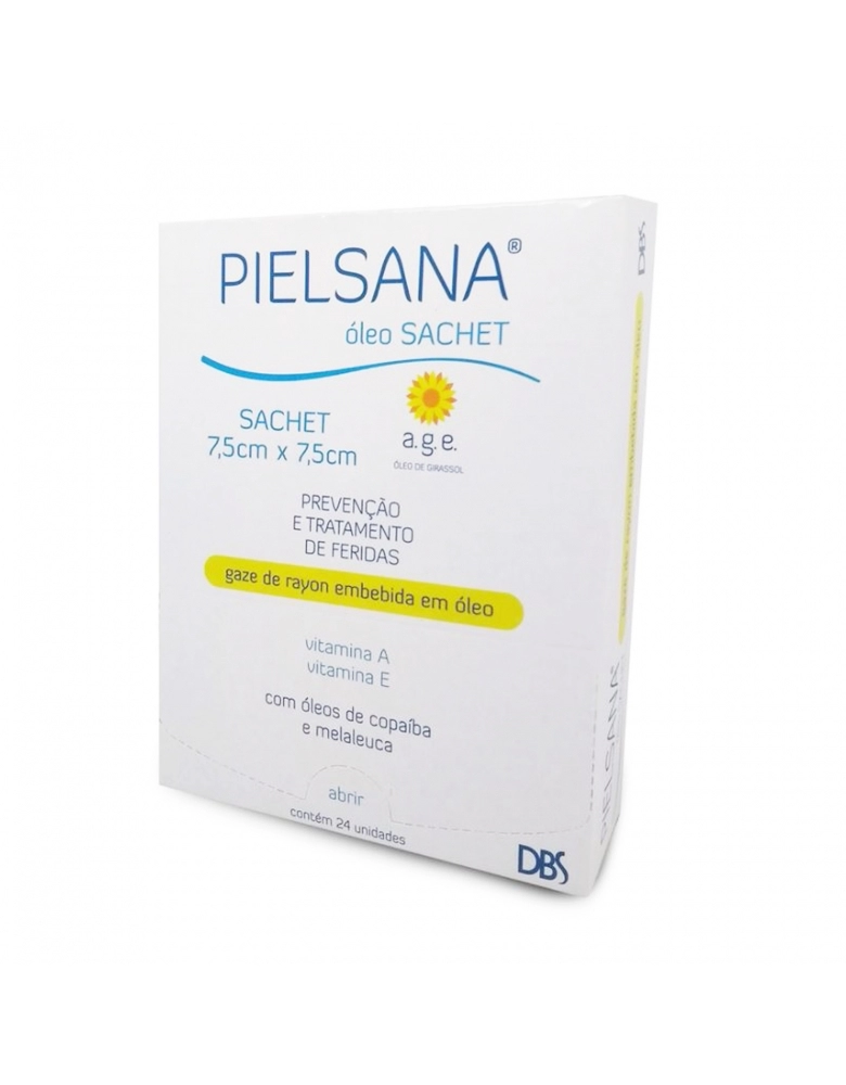 Pielsana® Sachet é uma gaze de rayon embebida em óleo a base de A.G.E (Ácidos Graxos Essenciais), T.C.M (Triglicerídeos de Cadeia Média), Vitaminas A e E, Óleos de Copaíba e Melaleuca, que previne e trata feridas agudas e crônicas, mesmo com perda de tecido superficial e total.